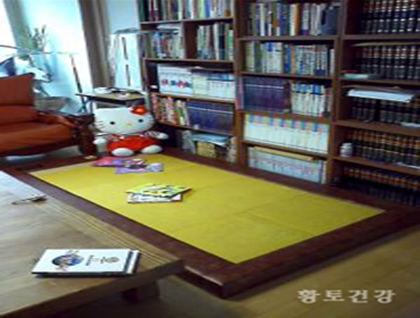 먼저샀던 안방에 둔 황토침대에 나란히 둘까? 어떨까? 고민하다가 보일러를 거의 틀지 않는 우리집에서는 늘 거실이 썰렁했는데 이번에는 아이와 상의하여 거실에 두기로 결정했습니다